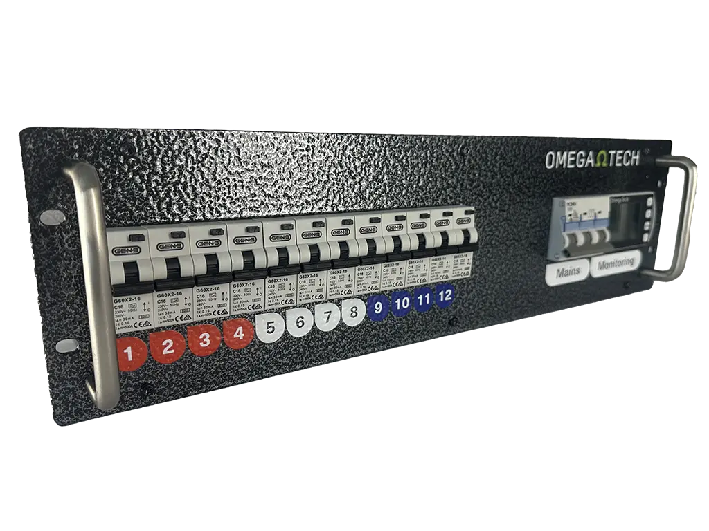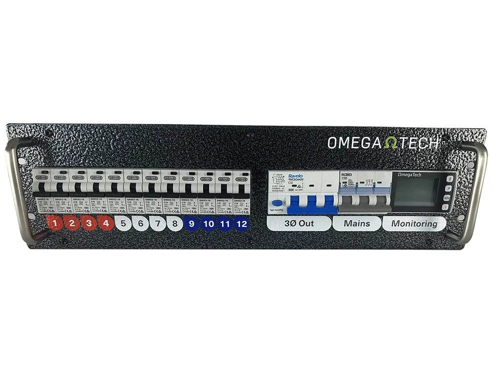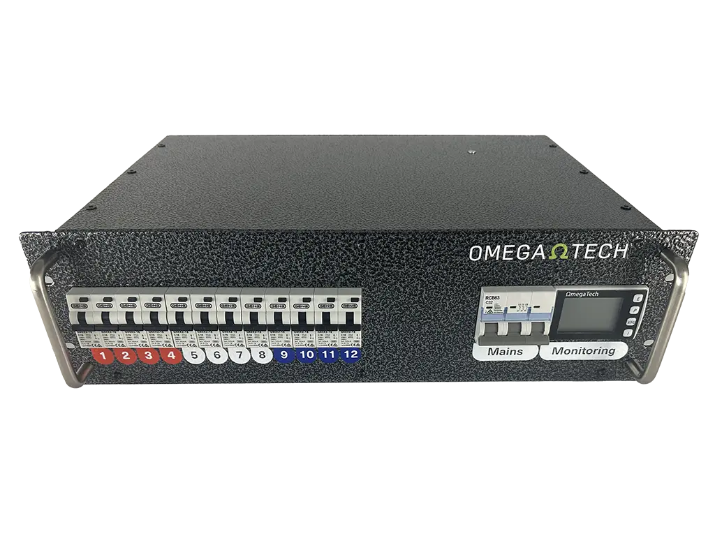 The OmegaTech Power Distribution Unit (PDU) is designed for fixed or mobile applications where three phase to single phase socket outlet power distribution is required. OmegaTech offers a variety of custom configurations to suit individual requirements.