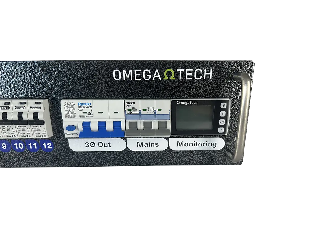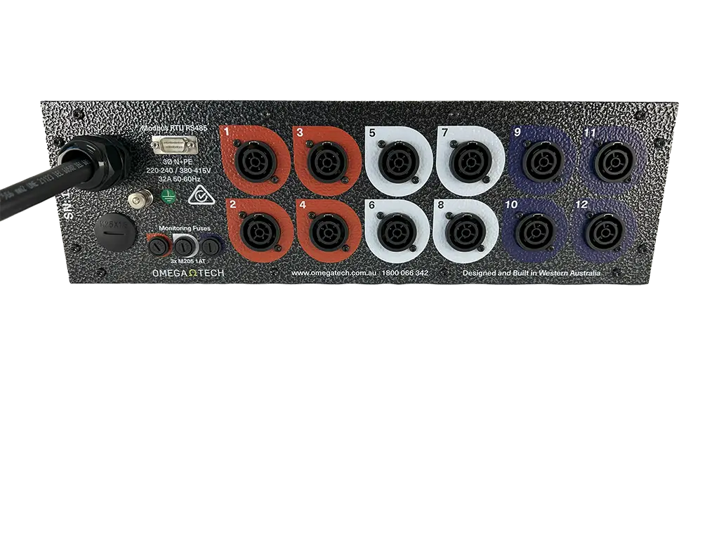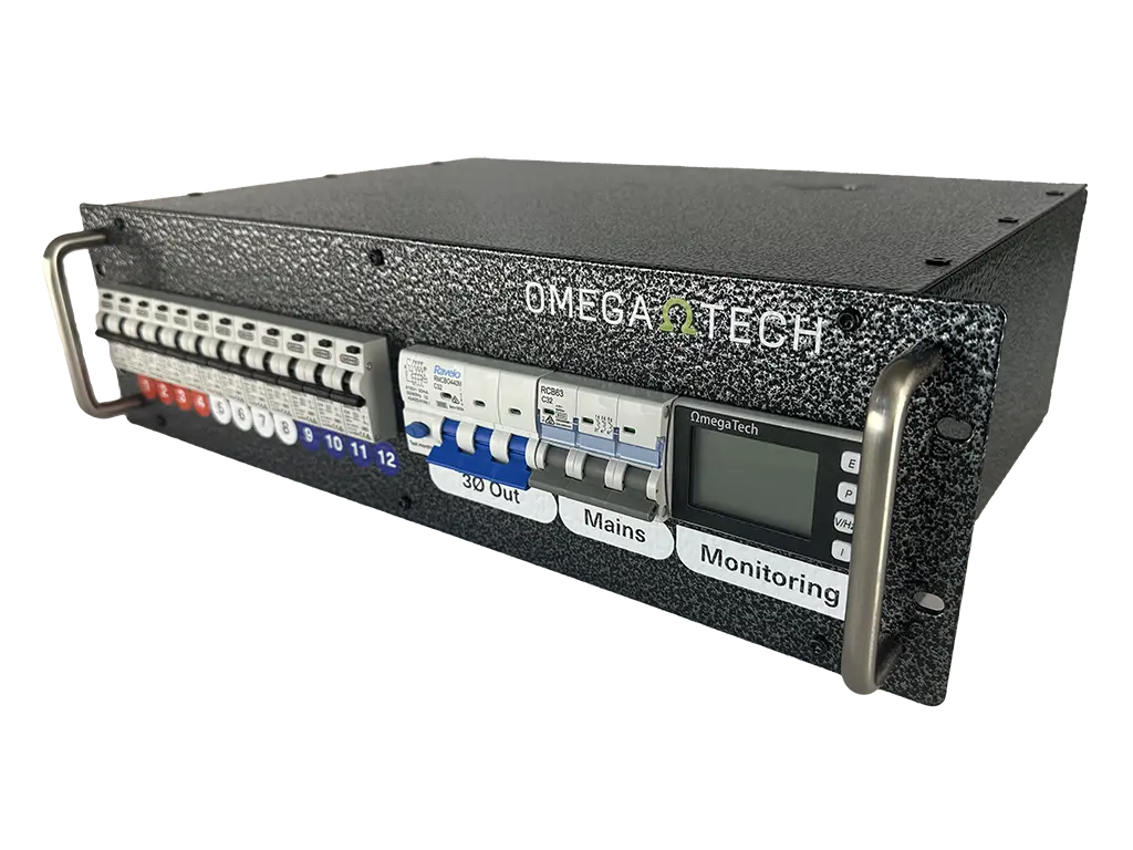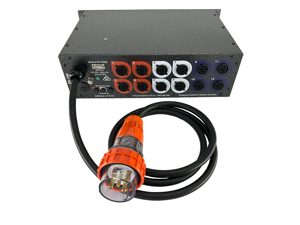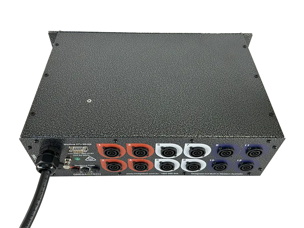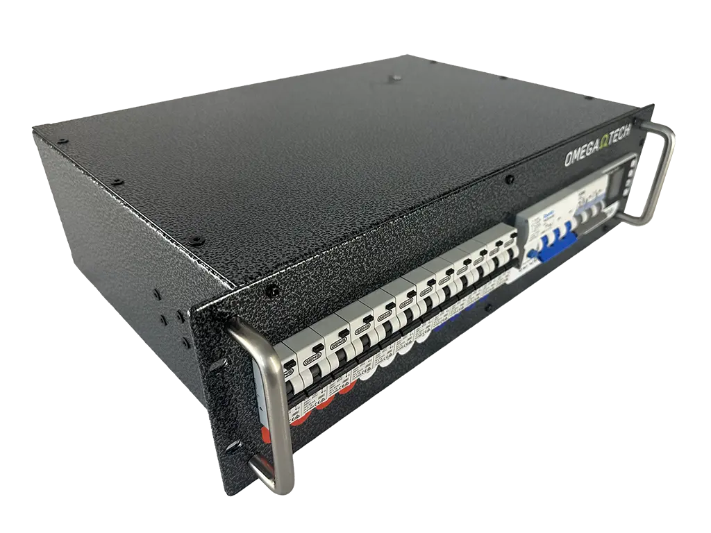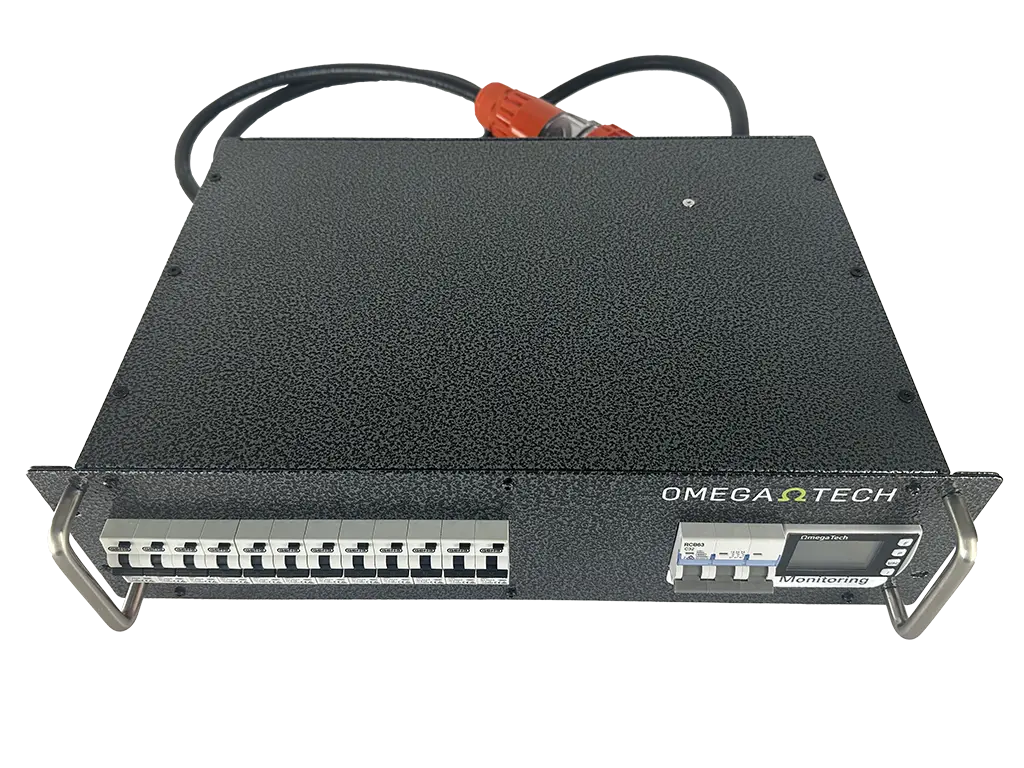 The OmegaTech Power Distribution Unit (PDU) is designed for fixed or mobile applications where three phase to single phase socket outlet power distribution is required. OmegaTech offers a variety of custom configurations to suit individual requirements.