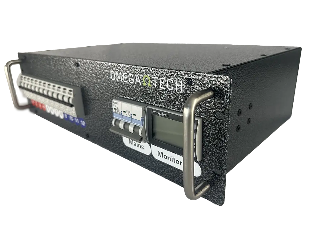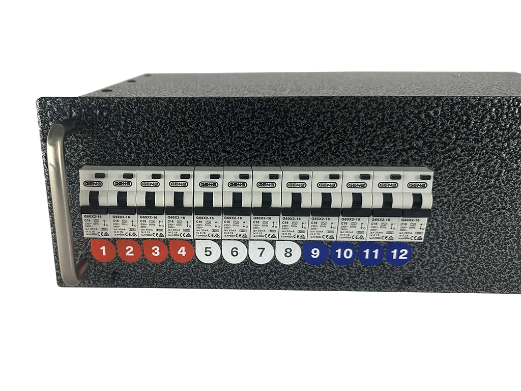 All units feature individual Residual Current Breaker with Over Current protection (RCBO) per circuit as well as a mains isolating switch. An available option is a 3 phase loop out tail with either RCBO or MCB which is a first in a 19” rack distribution format. All units include comprehensive input power monitoring display, which turns on prior to main breaker, meaning any untoward power situations can be identified before potential damage to equipment is caused.